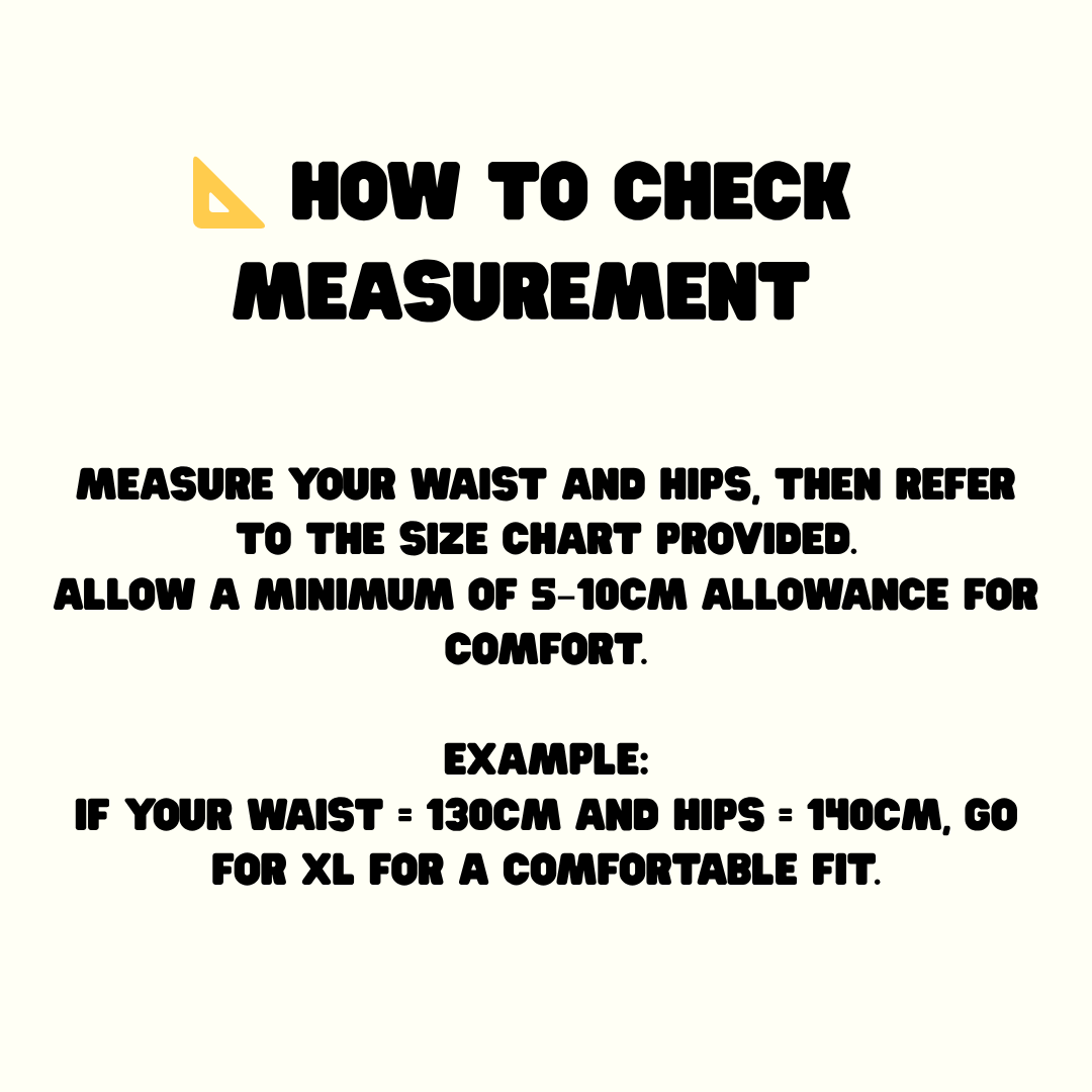 Measure your waist and hips, then refer to the size chart provided.