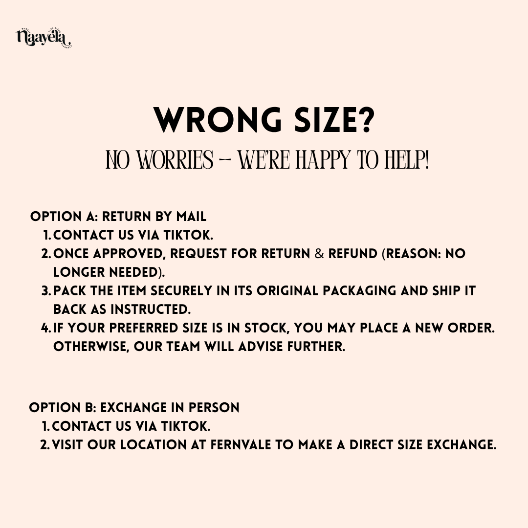 Visit our location at Fernvale to make a direct size exchange.